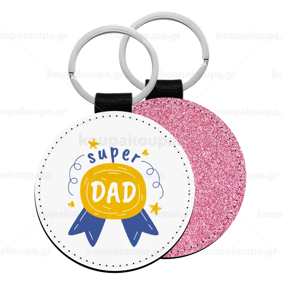Μπαμπά είσαι για μετάλλιο, Μπρελόκ Δερματίνη, στρογγυλό ΡΟΖ (5cm)