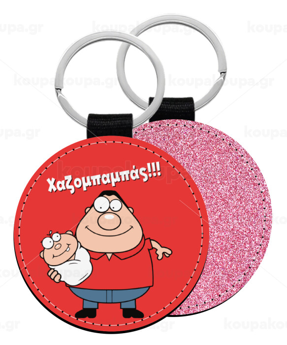 Χαζομπαμπάς, Μπρελόκ Δερματίνη, στρογγυλό ΡΟΖ (5cm)