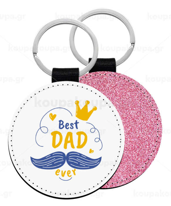 Best dad ever ο Βασιλιάς, Μπρελόκ Δερματίνη, στρογγυλό ΡΟΖ (5cm)