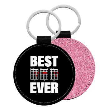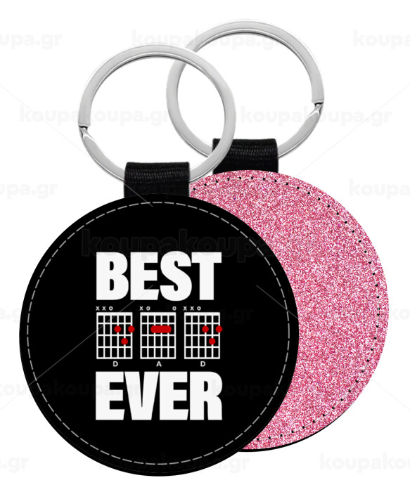 Best DAD Ever guitar chords, Μπρελόκ Δερματίνη, στρογγυλό ΡΟΖ (5cm)