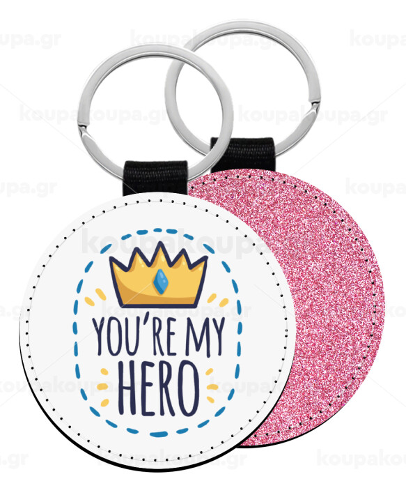 Dad, you are my hero!, Μπρελόκ Δερματίνη, στρογγυλό ΡΟΖ (5cm)