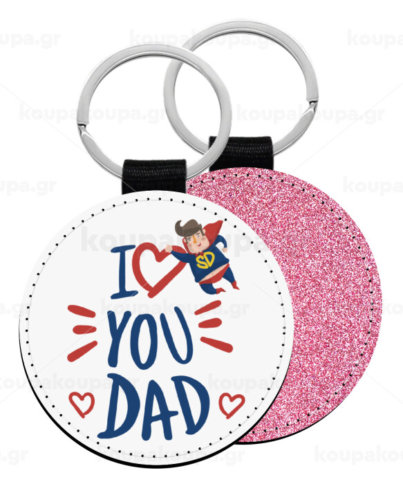 Super Dad, Μπρελόκ Δερματίνη, στρογγυλό ΡΟΖ (5cm)