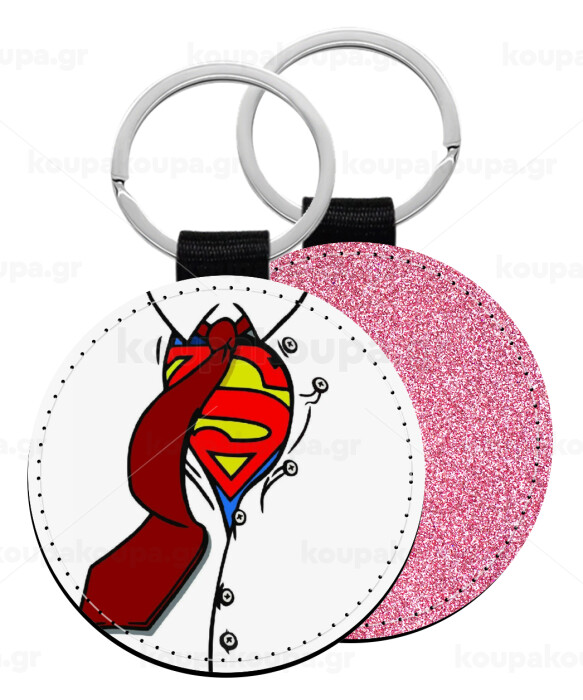 SuperDad, Μπρελόκ Δερματίνη, στρογγυλό ΡΟΖ (5cm)