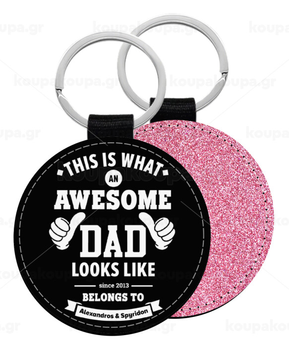 This is what an Awesome DAD looks like, Μπρελόκ Δερματίνη, στρογγυλό ΡΟΖ (5cm)