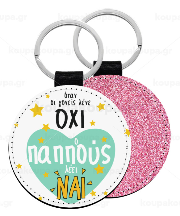 Όταν οι γονείς λένε ΟΧΙ, ο παππούς λέει ΝΑΙ, Μπρελόκ Δερματίνη, στρογγυλό ΡΟΖ (5cm)