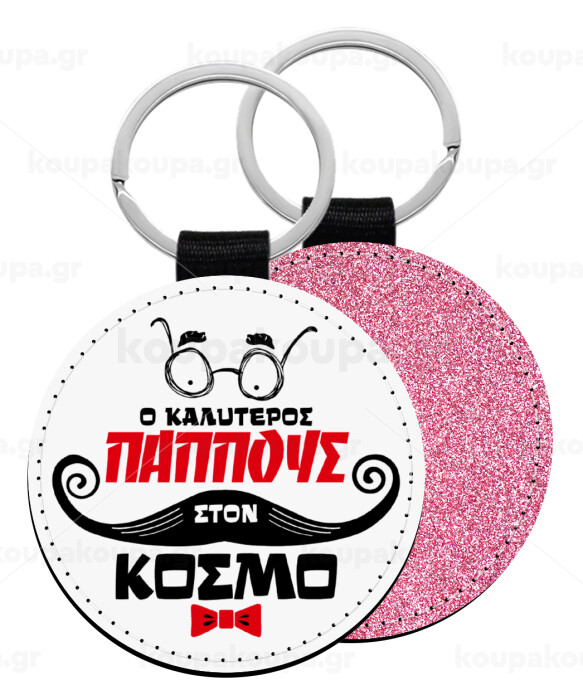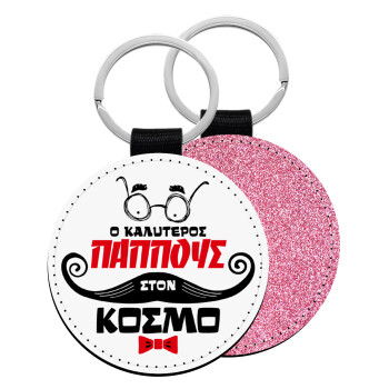 Ο καλύτερος παππούς του κόσμου!, Μπρελόκ Δερματίνη, στρογγυλό ΡΟΖ (5cm)