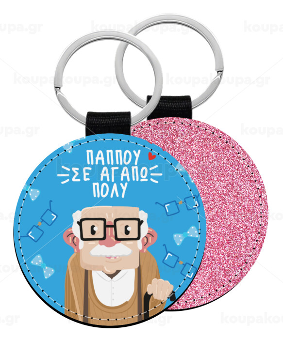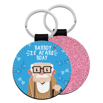 Παππού σε αγαπώ πολύ!, Μπρελόκ Δερματίνη, στρογγυλό ΡΟΖ (5cm)