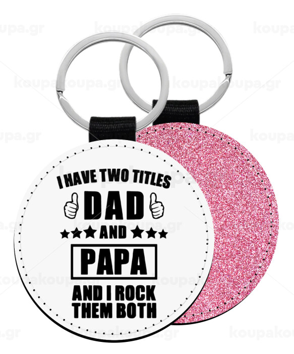 I have two title, DAD & PAPA, Μπρελόκ Δερματίνη, στρογγυλό ΡΟΖ (5cm)