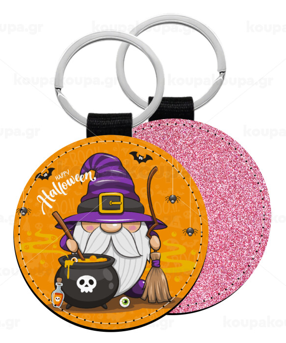 Happy Halloween (Χαλοουίν), Μπρελόκ Δερματίνη, στρογγυλό ΡΟΖ (5cm)