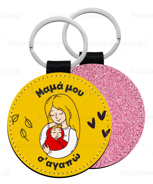 Μανούλα σ'αγαπώ αγκαλιά!, Μπρελόκ Δερματίνη, στρογγυλό ΡΟΖ (5cm)