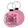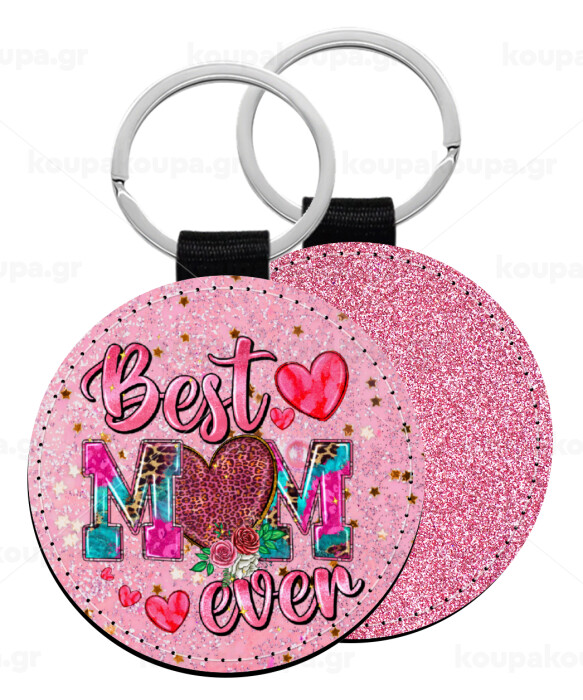Best mom ever Mother's Day pink, Μπρελόκ Δερματίνη, στρογγυλό ΡΟΖ (5cm)