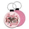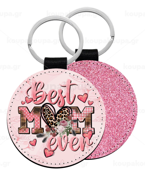 Best mom ever Mother's Day, Μπρελόκ Δερματίνη, στρογγυλό ΡΟΖ (5cm)