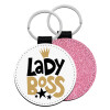 Lady Boss, Μπρελόκ Δερματίνη, στρογγυλό ΡΟΖ (5cm)