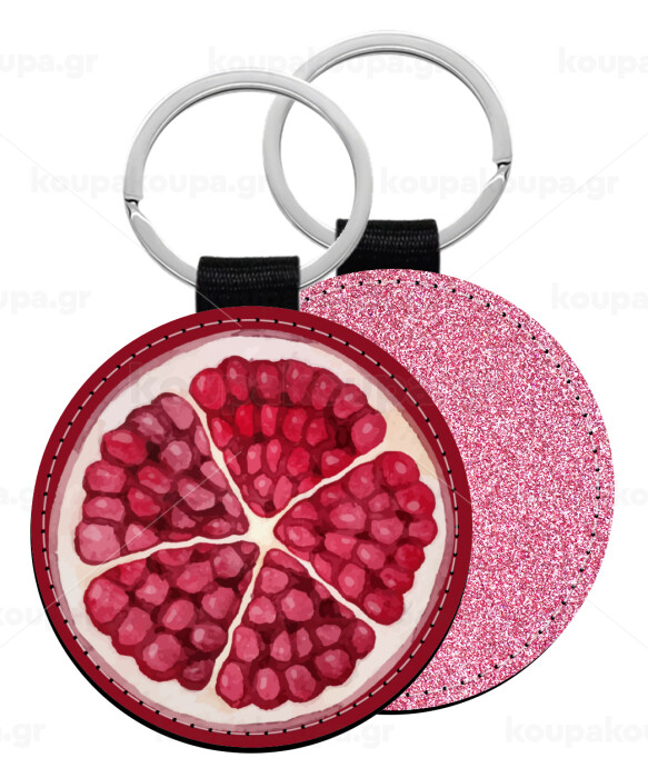pomegranate, Μπρελόκ Δερματίνη, στρογγυλό ΡΟΖ (5cm)
