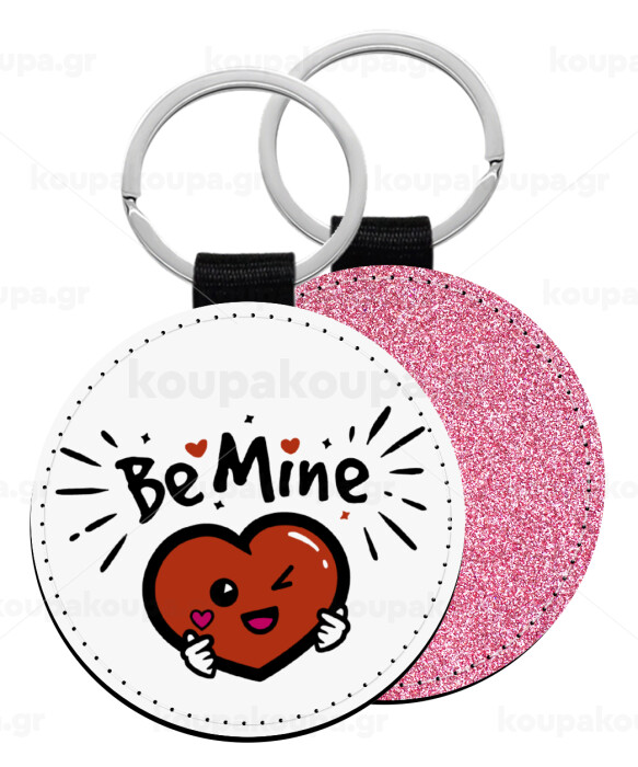 Be mine!, Μπρελόκ Δερματίνη, στρογγυλό ΡΟΖ (5cm)