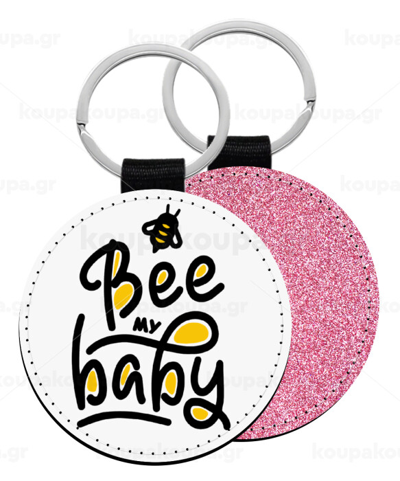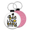Bee my BABY!!!, Μπρελόκ Δερματίνη, στρογγυλό ΡΟΖ (5cm)