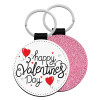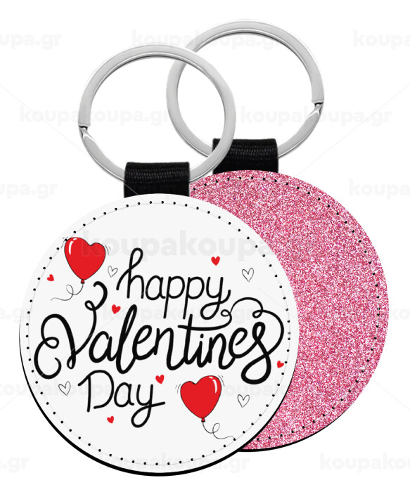 Happy Valentines Day!!!, Μπρελόκ Δερματίνη, στρογγυλό ΡΟΖ (5cm)