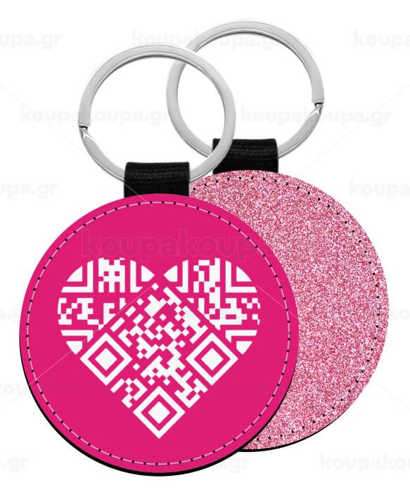 Heart hidden MSG, try me!!!, Μπρελόκ Δερματίνη, στρογγυλό ΡΟΖ (5cm)