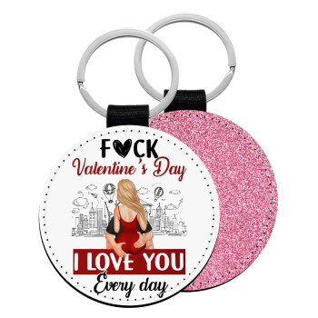 I love You Everyday , Μπρελόκ Δερματίνη, στρογγυλό ΡΟΖ (5cm)