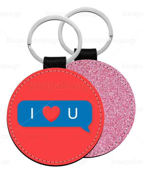I Love You text message, Μπρελόκ Δερματίνη, στρογγυλό ΡΟΖ (5cm)