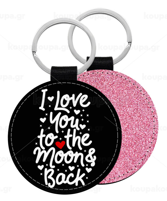 I love you to the moon and back with hearts, Μπρελόκ Δερματίνη, στρογγυλό ΡΟΖ (5cm)