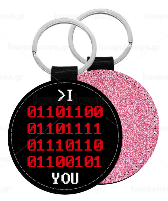 I .... YOU, binary secret MSG, Μπρελόκ Δερματίνη, στρογγυλό ΡΟΖ (5cm)
