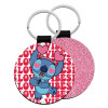 Lilo & Stitch Love vibes, Μπρελόκ Δερματίνη, στρογγυλό ΡΟΖ (5cm)