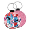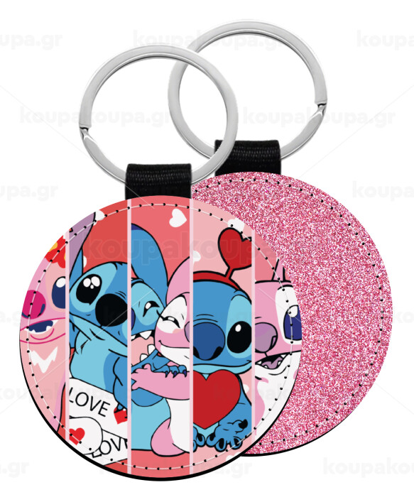Lilo & Stitch Love, Μπρελόκ Δερματίνη, στρογγυλό ΡΟΖ (5cm)