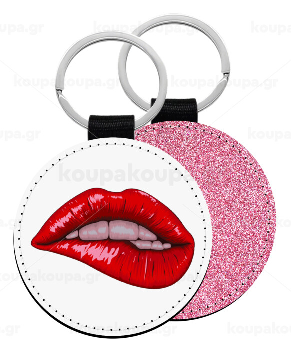 Lips, Μπρελόκ Δερματίνη, στρογγυλό ΡΟΖ (5cm)