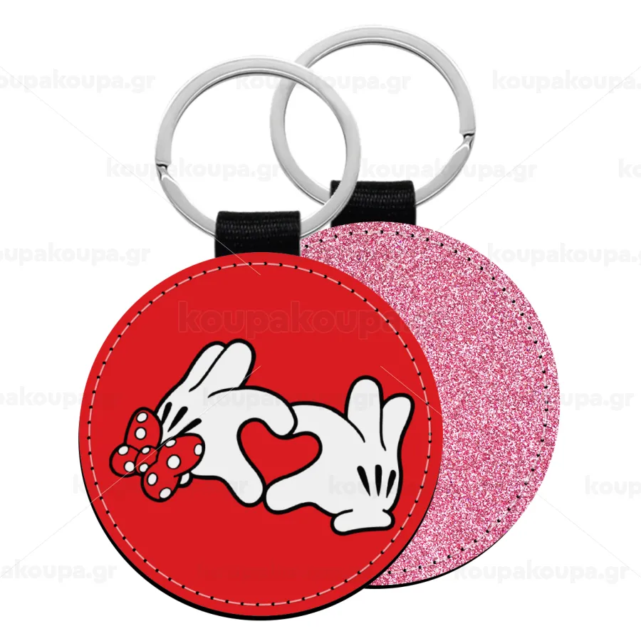 Love hands, Μπρελόκ Δερματίνη, στρογγυλό ΡΟΖ (5cm)