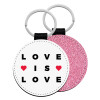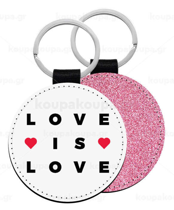 Love is Love, Μπρελόκ Δερματίνη, στρογγυλό ΡΟΖ (5cm)