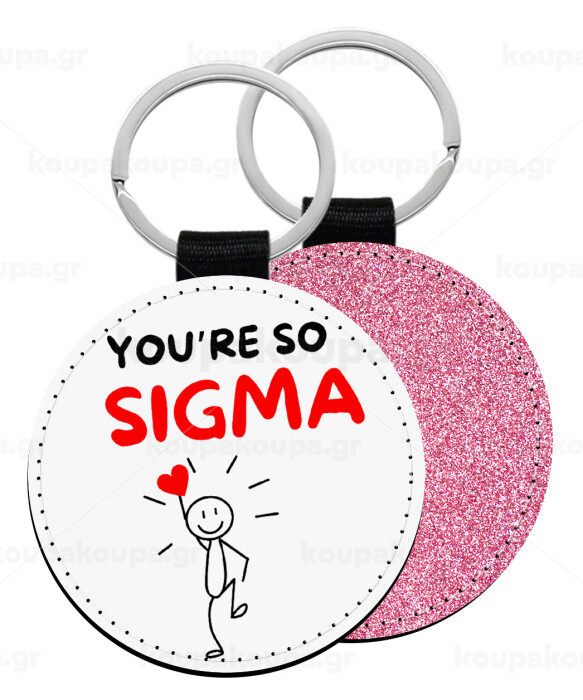 Sigma Valentine's Day , Μπρελόκ Δερματίνη, στρογγυλό ΡΟΖ (5cm)