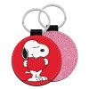 Snoopy takemy heart, Μπρελόκ Δερματίνη, στρογγυλό ΡΟΖ (5cm)