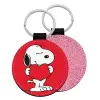 Snoopy takemy heart, Μπρελόκ Δερματίνη, στρογγυλό ΡΟΖ (5cm)