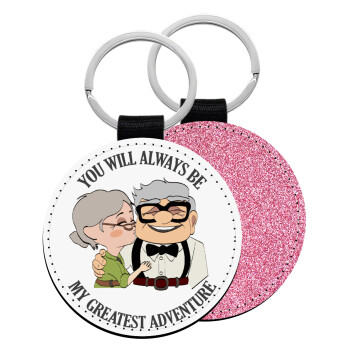 UP, YOU WILL ALWAYS BE MY GREATEST ADVENTURE, Μπρελόκ Δερματίνη, στρογγυλό ΡΟΖ (5cm)