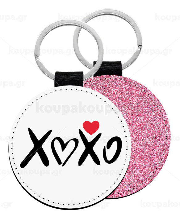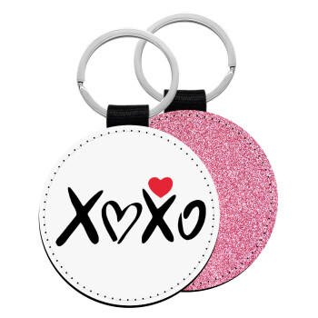 xoxo, Μπρελόκ Δερματίνη, στρογγυλό ΡΟΖ (5cm)