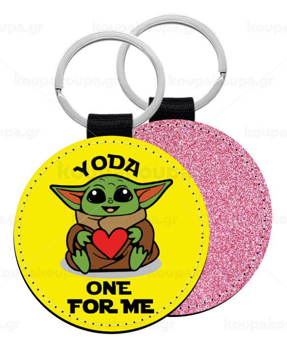 Yoda, one for me , Μπρελόκ Δερματίνη, στρογγυλό ΡΟΖ (5cm)