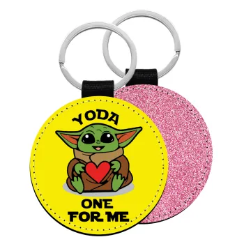 Yoda, one for me , Μπρελόκ Δερματίνη, στρογγυλό ΡΟΖ (5cm)