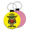 Yoda, one for me , Μπρελόκ Δερματίνη, στρογγυλό ΡΟΖ (5cm)