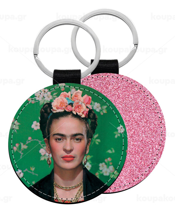 Frida Kahlo, Μπρελόκ Δερματίνη, στρογγυλό ΡΟΖ (5cm)