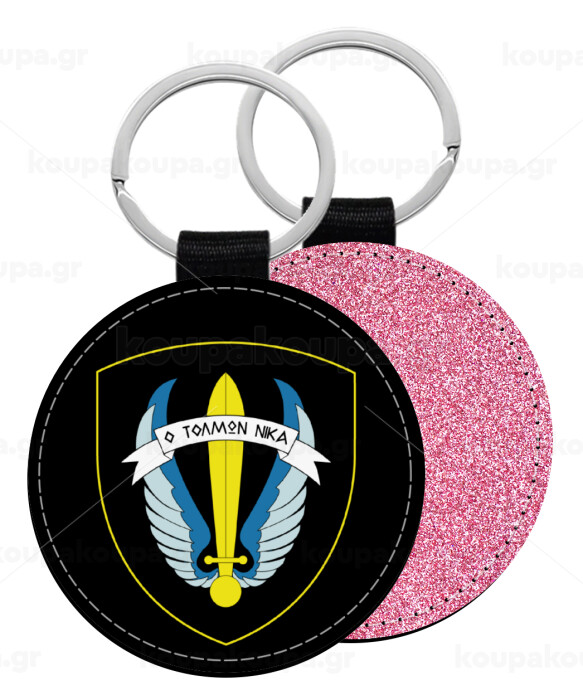 Έμβλημα Μονάδων Καταδρομών Ο Τολμων Νικα - Λοκ, Μπρελόκ Δερματίνη, στρογγυλό ΡΟΖ (5cm)