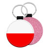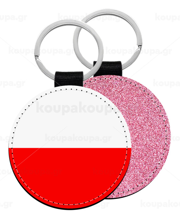 Poland flag, Μπρελόκ Δερματίνη, στρογγυλό ΡΟΖ (5cm)
