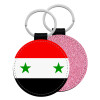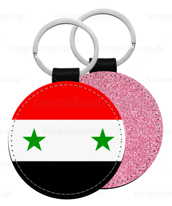 Syria flag, Μπρελόκ Δερματίνη, στρογγυλό ΡΟΖ (5cm)