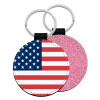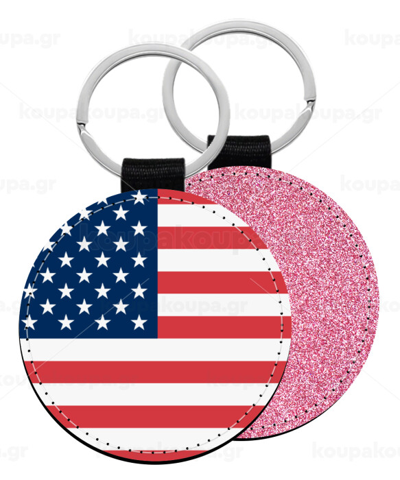 USA flag, Μπρελόκ Δερματίνη, στρογγυλό ΡΟΖ (5cm)