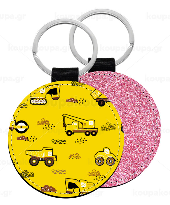 Car construction, Μπρελόκ Δερματίνη, στρογγυλό ΡΟΖ (5cm)