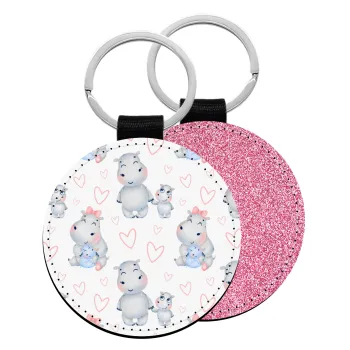 Hippo, Μπρελόκ Δερματίνη, στρογγυλό ΡΟΖ (5cm)