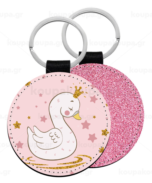 Crowned swan, Μπρελόκ Δερματίνη, στρογγυλό ΡΟΖ (5cm)