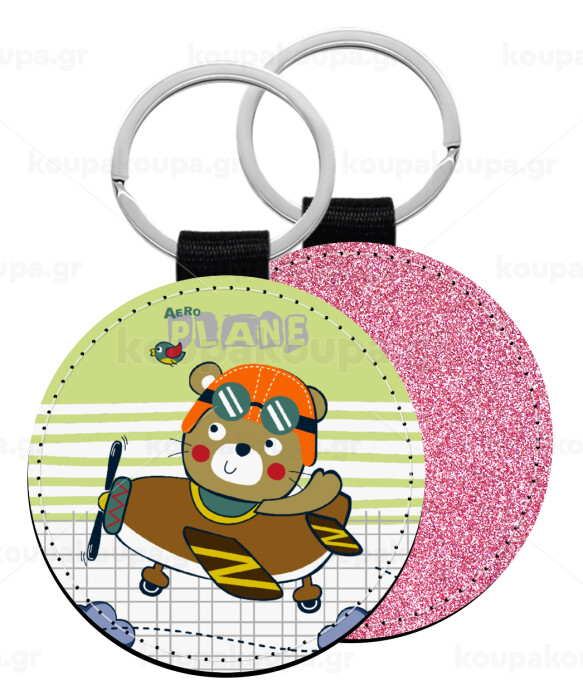 Kids Plane, Μπρελόκ Δερματίνη, στρογγυλό ΡΟΖ (5cm)