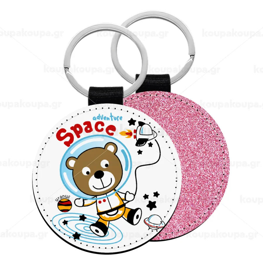 Kids Space, Μπρελόκ Δερματίνη, στρογγυλό ΡΟΖ (5cm)