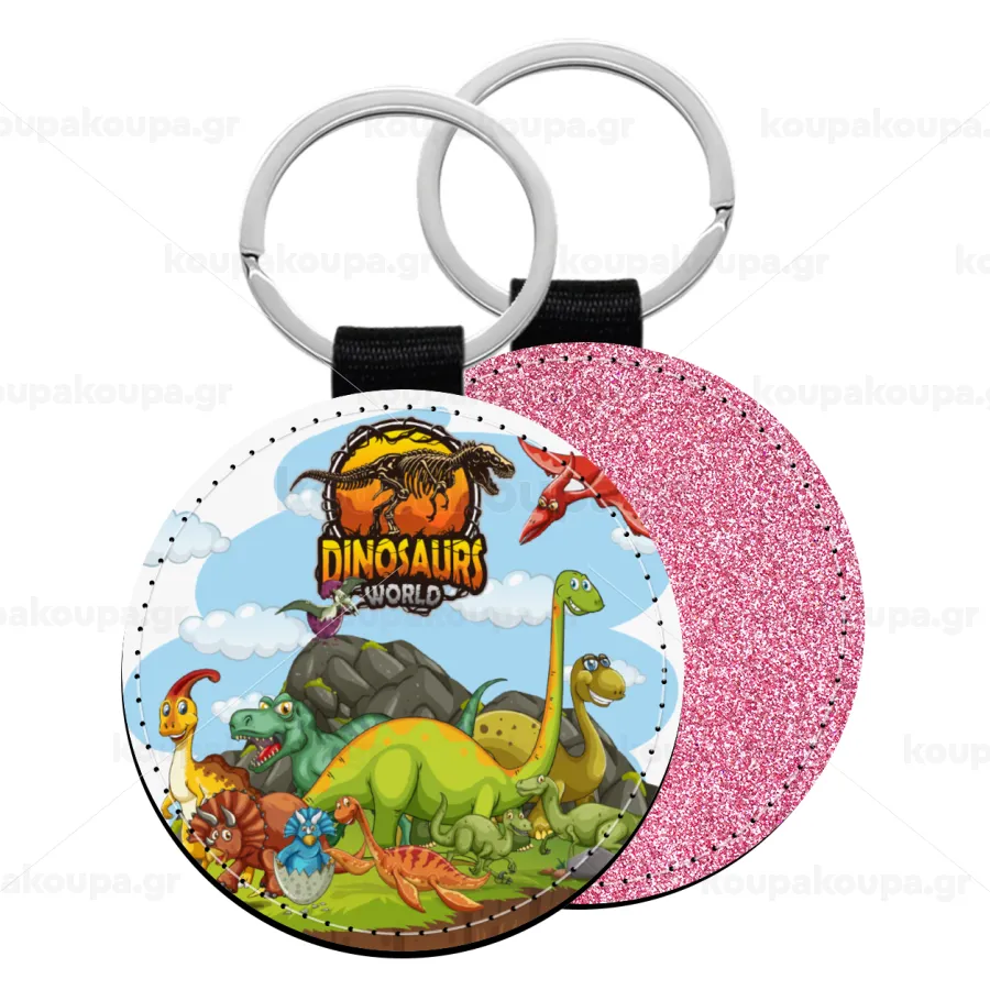 Dinosaur's world, Μπρελόκ Δερματίνη, στρογγυλό ΡΟΖ (5cm)